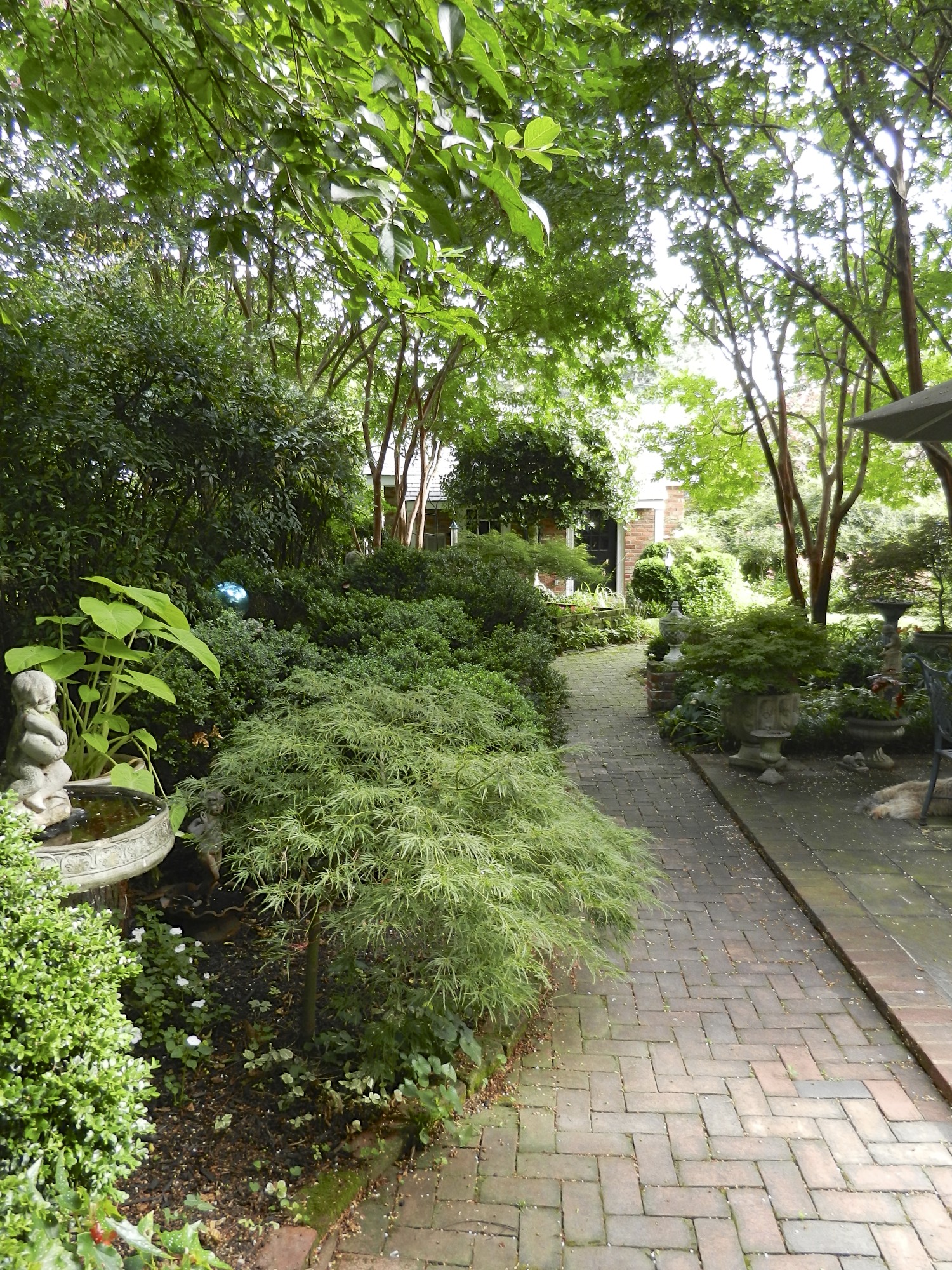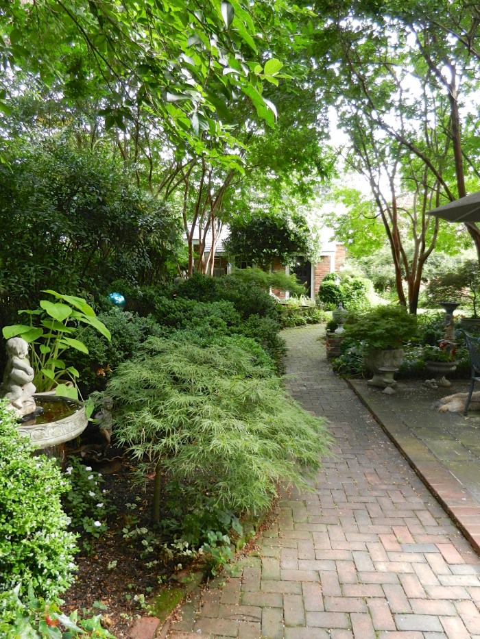 Sadly, in 2004, when Hurricane Isabel roared into town, an enormous maple tree on the right went down and crushed it.  We had to have a crane come in to lift it off it was so big.  So, this is a replica of the original.  We wanted it put back just like it was.  In the end, some good came from it because I saved all the old bricks and used them in the garden.  The fish pond and brick wall were built using them.