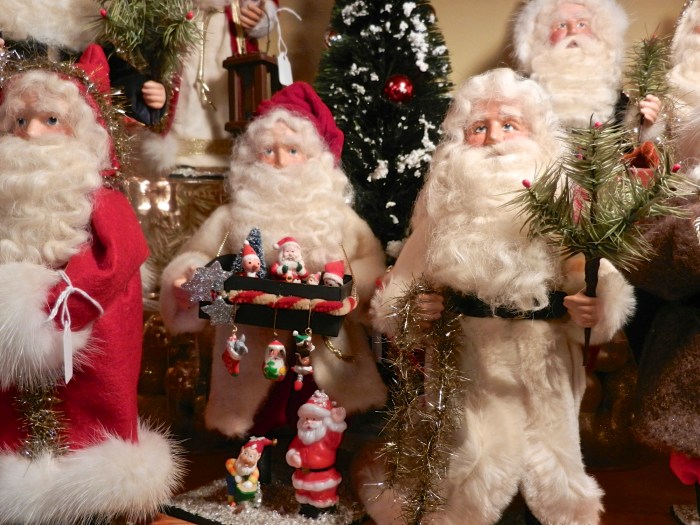 Fantastic handmade Santa’s by a lady in Ohio whose name escapes me at the moment. Jill can tell you though!