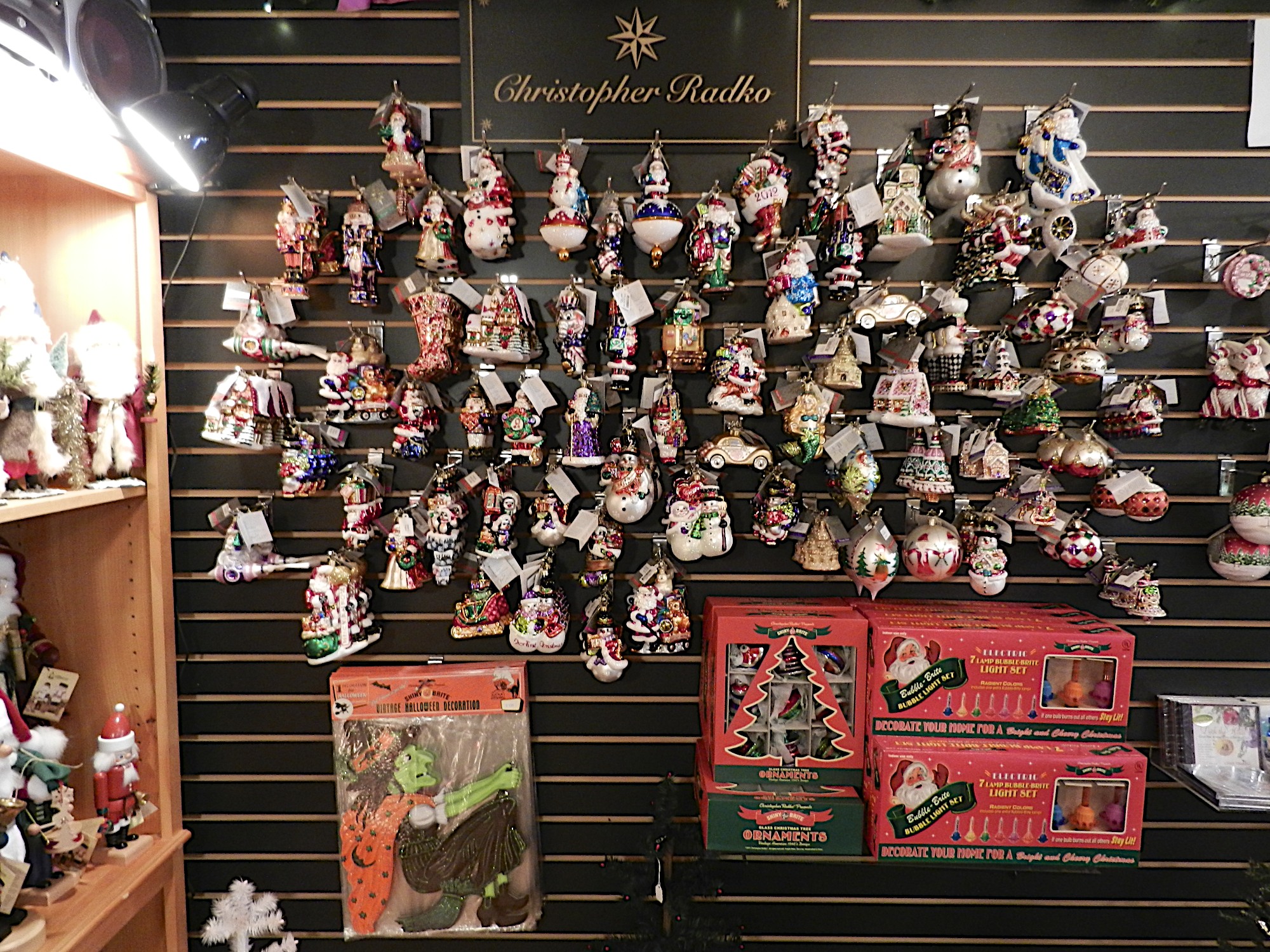 The Christopher Radko wall. Remember this is July. This wall explodes with ornaments in the Fall.