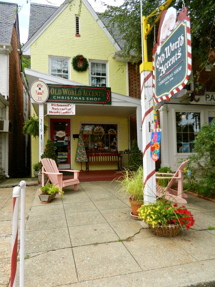 This is OLD WORLD ACCENTS in the Carytown area of Richmond, VA and it is owned by a friend of mine whose name is Jill Pillow. Isn’t this an inviting entryway? It is in a 2-story building which once was a photography studio owned by two brothers and before that it was somebody’s home. Lots of Carytown’s shops are like this; very eclectic and fun. Let’s go in.