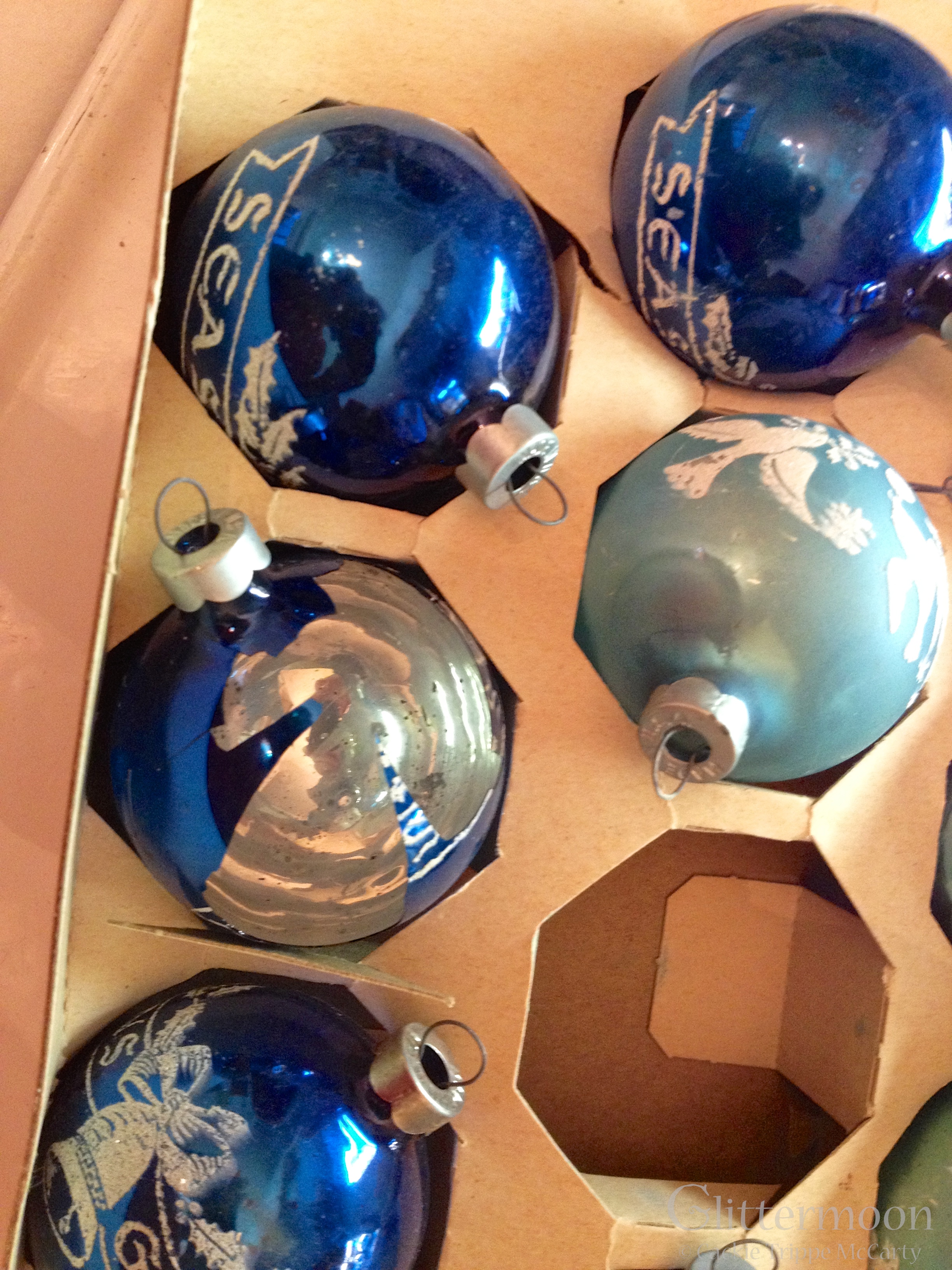 It always seems to be the ones I wanted most that are the ones that don’t make it. I like to buy in fairly large lots and there are usually a few ornaments that are the main reason I chose to bid. Like these beautiful blue stencils. Toast.
