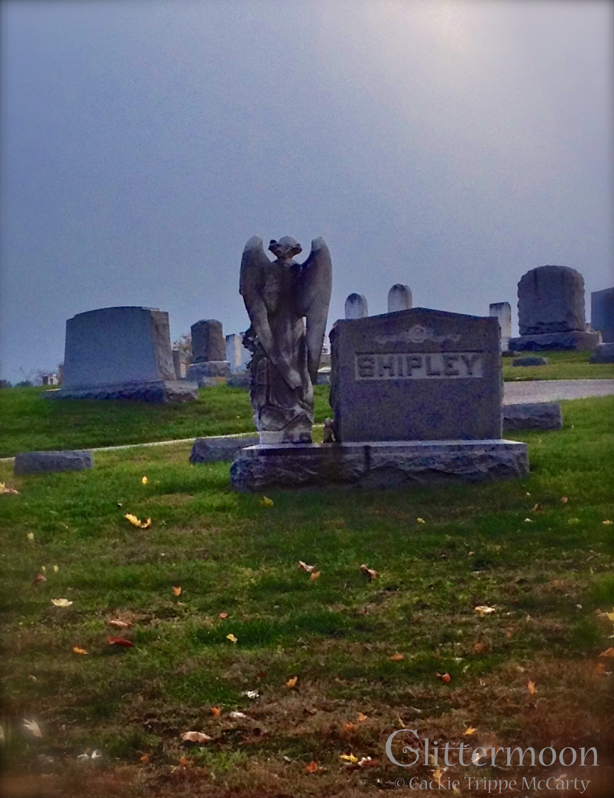 The parish hall is behind the town cemetery. As I walked to the show on Friday morning, I was struck by the sun sending down beams of light through the clouds onto a stone angel. it was so lovely that I had to take a picture. I only had my phone and had to take it through a chain link fence but I like the result anyway.