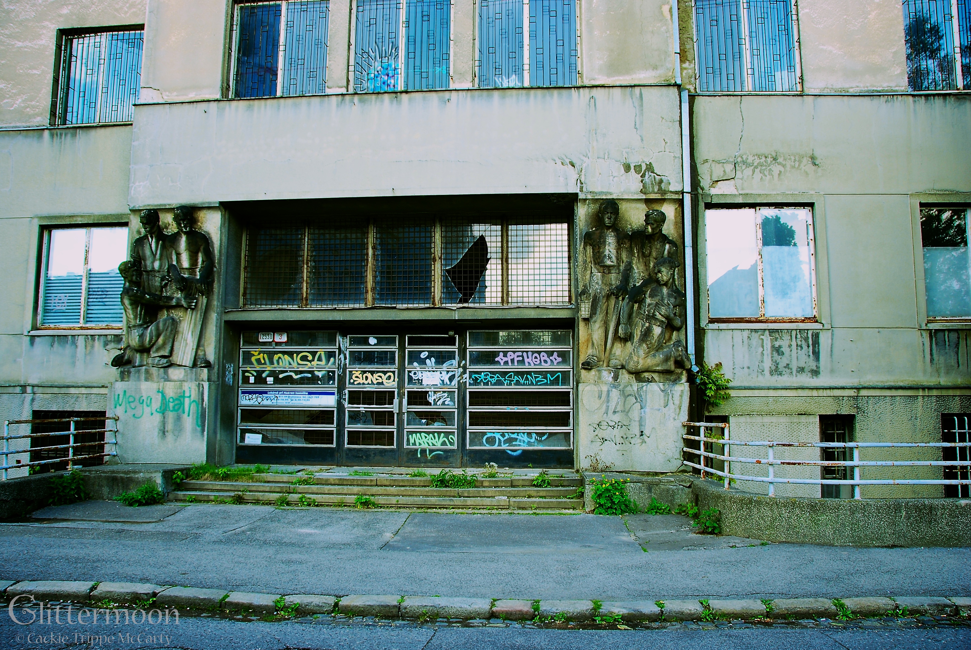 In this case, the two images represent buildings that are directly across the street from each other in Bratislava, Slovakia. Please click on all the pictures to see them full size, which is so much better.