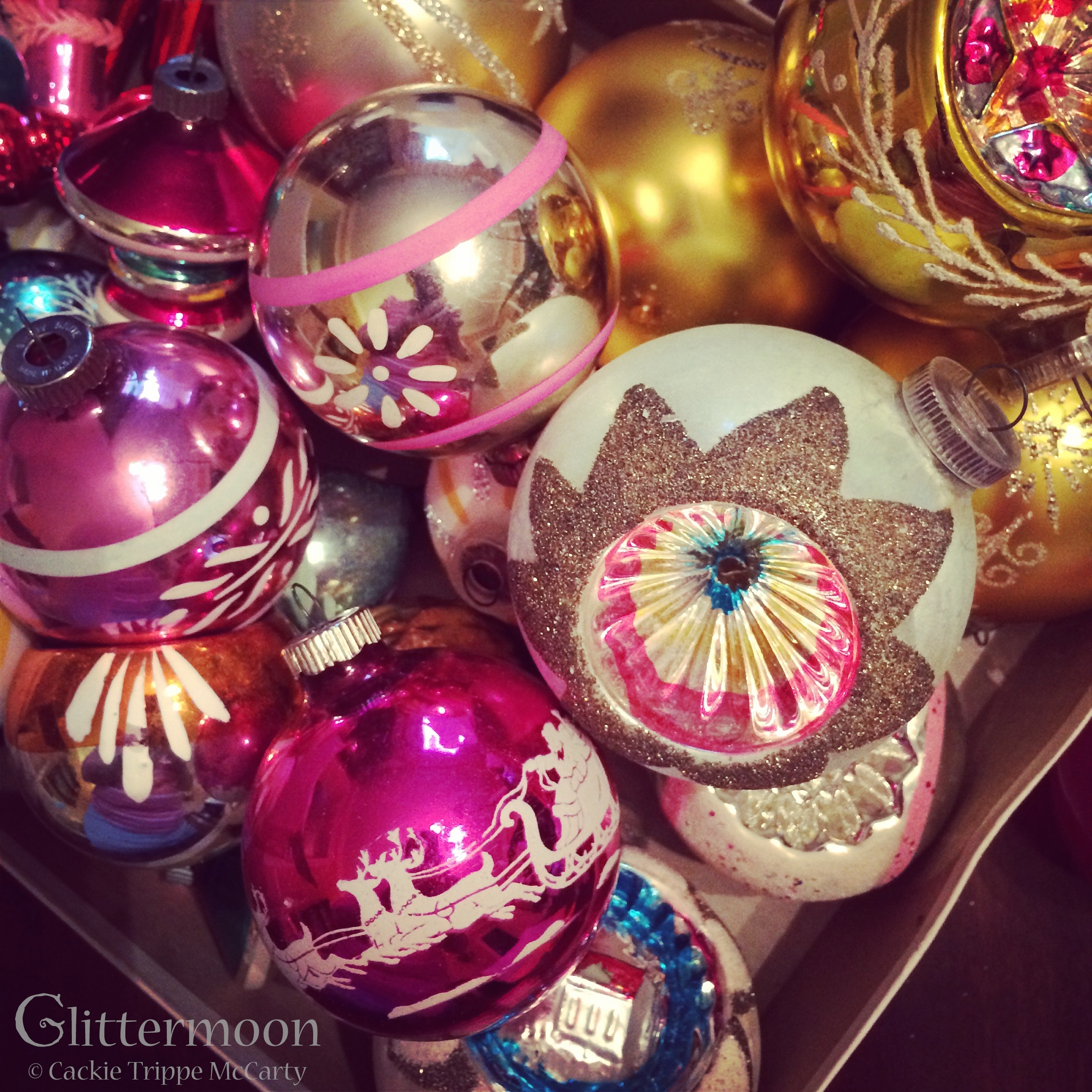Cackie congratulations on your treasure trove! Reminds me of our Christmas trees when we were kids. I had the pleasure of meeting you at the Country Living Fair in Rhinebeck after stalking you online for awhile. I have your candy dish (?) with the virgin Mary kneeling beside two ornaments and a bottle brush tree sitting proudly on my Grandmother’s sewing machine cabinet. No one has yet told me that I should only have it out at Christmas…my house, my rules. Cannot wait to see what these lovely ornaments become. Your fan/friend, MaryJo