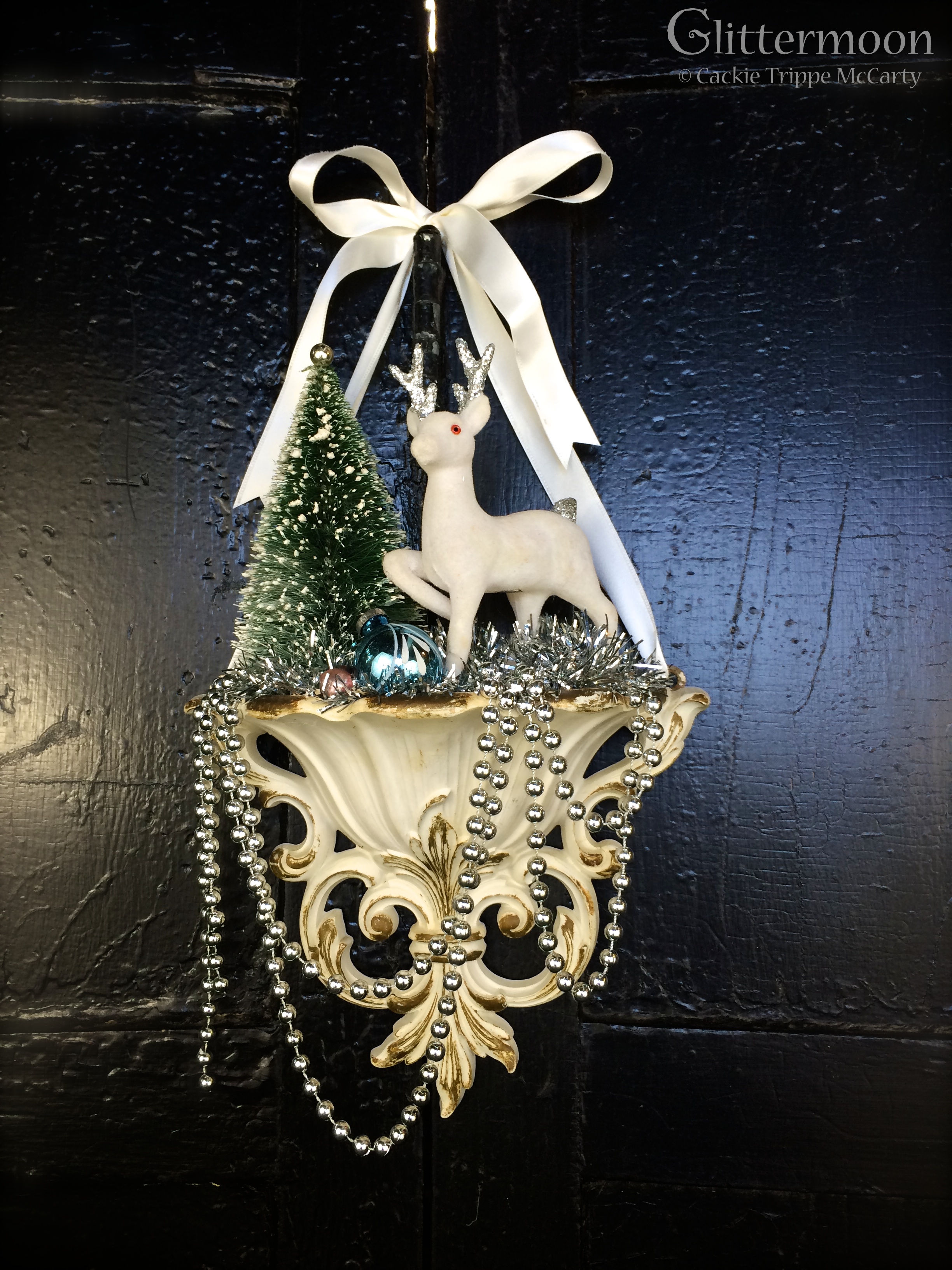 Mid-Century Memories is just that. With a wonderful Santa candy container as the centerpiece, this baby has all the stuff we boomers grew up with at our Christmases. That’s even an aluminum tree branch poking out of the top. Way too much fun!
