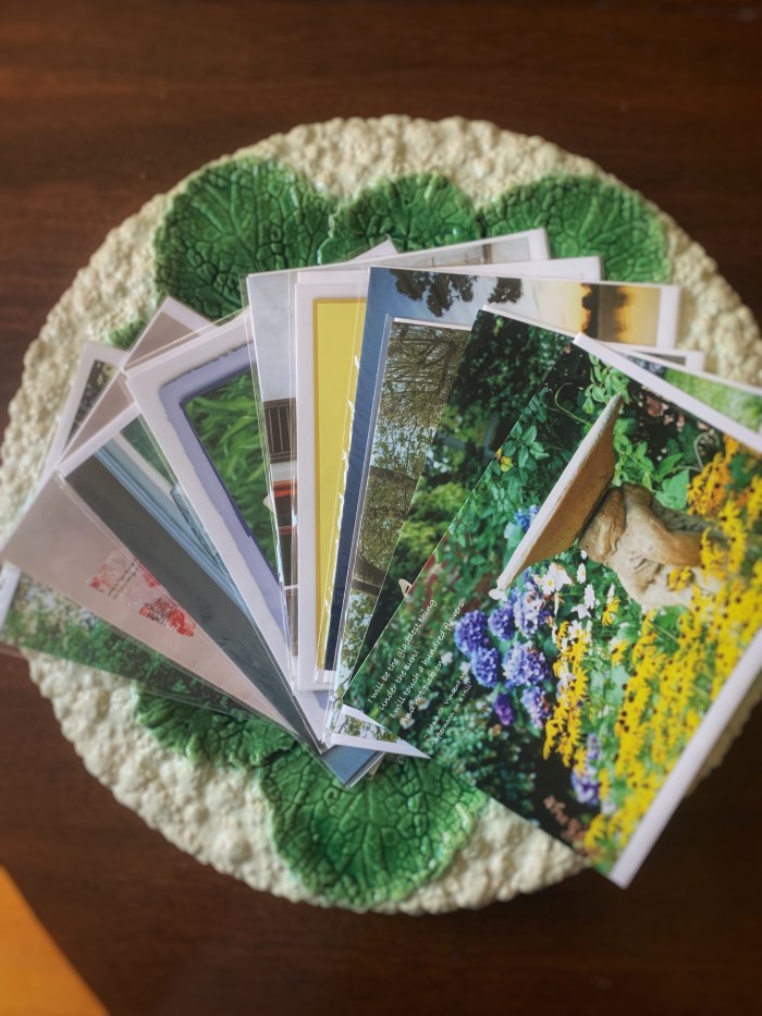 Speaking of Instagram, I do hope you are following me there at GlittermoonCards. It’s become my happy place. Because you can better control what’s in your feed than on Facebook, which I have found to be so toxic and negative at times, I can’t spend a great deal of time on it these days. Instead, I much prefer to follow along – and make friends (albeit virtual) with – like-minded, positive people who post lovely visuals. In all honesty, I have struggled quite a lot to keep my emotional being centered this year; IG has been like a balm. Since we cannot see our friends in person right now, it’s become a sort of surrogate friend. I tend to follow designers and gardeners. One of my favorite designers (and Richmond native), Charlotte Moss, notably, helped keep so many of us out of the “weeds” this past spring by offering up weekly creative challenges that were not only fun but they also benefitted charity. An example of this was the Collage Challenge. For every collage submitted, Charlotte , a lifelong collage aficiando, offered to contribute $100 to Feeding America. In the end, that added up to a whopping $100,000 donation!