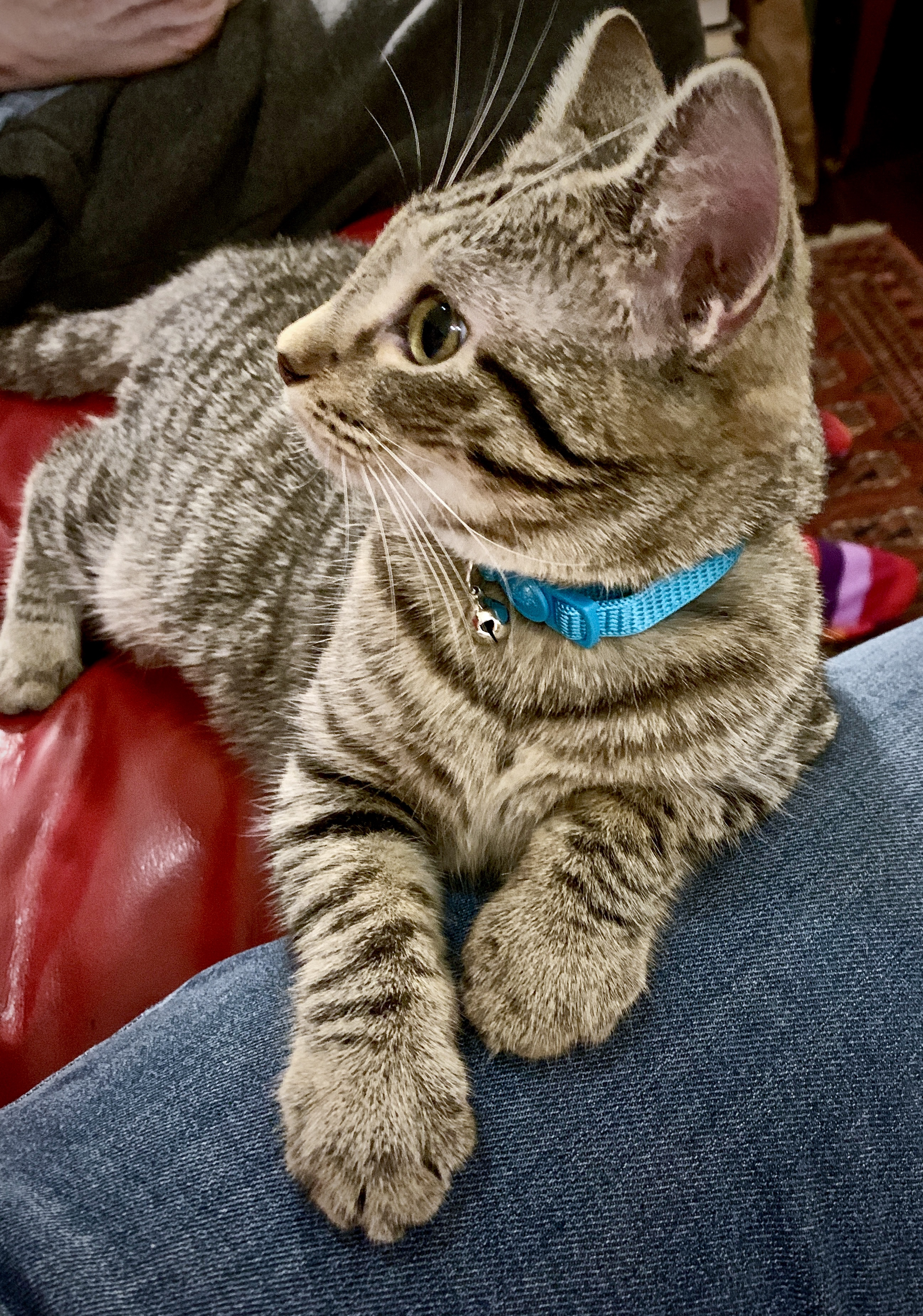 And to top it off, we just adopted a new kitty today!!! If you remember, we lost our beloved 20 year old Gabby, the face of Glittermoon Cards, in July. We finally got to the point where we couldn’t stand the empty space any longer. So Emma has a new sister. ☺️ She is 6 months old, a pretty tabby, a doll baby, and not in the least scared of anything so far – amazing. I haven’t finalized a name for her but I’ve got an idea – we shall see how it settles in the next couple of days. Here’s a not very good picture of her: