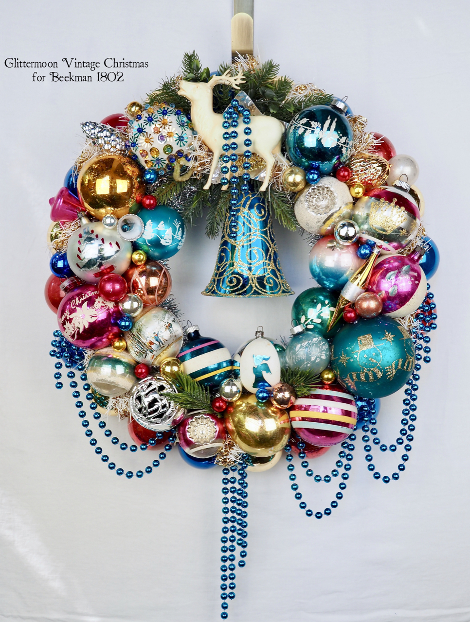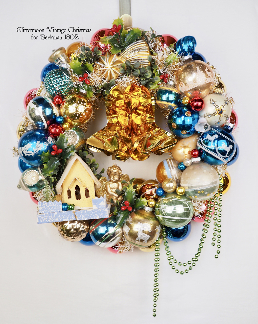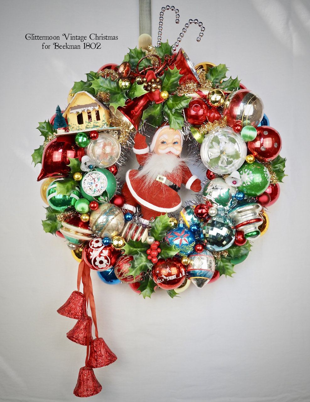 I am very happy that, for the eighth year, Glittermoon Vintage Christmas wreaths will have a presence on the Beekman 1802 Holiday website. Their theme this year is “Jingle All Ways.” As you might imagine, bells feature prominently; most if not all of these wreaths have bells on them.
