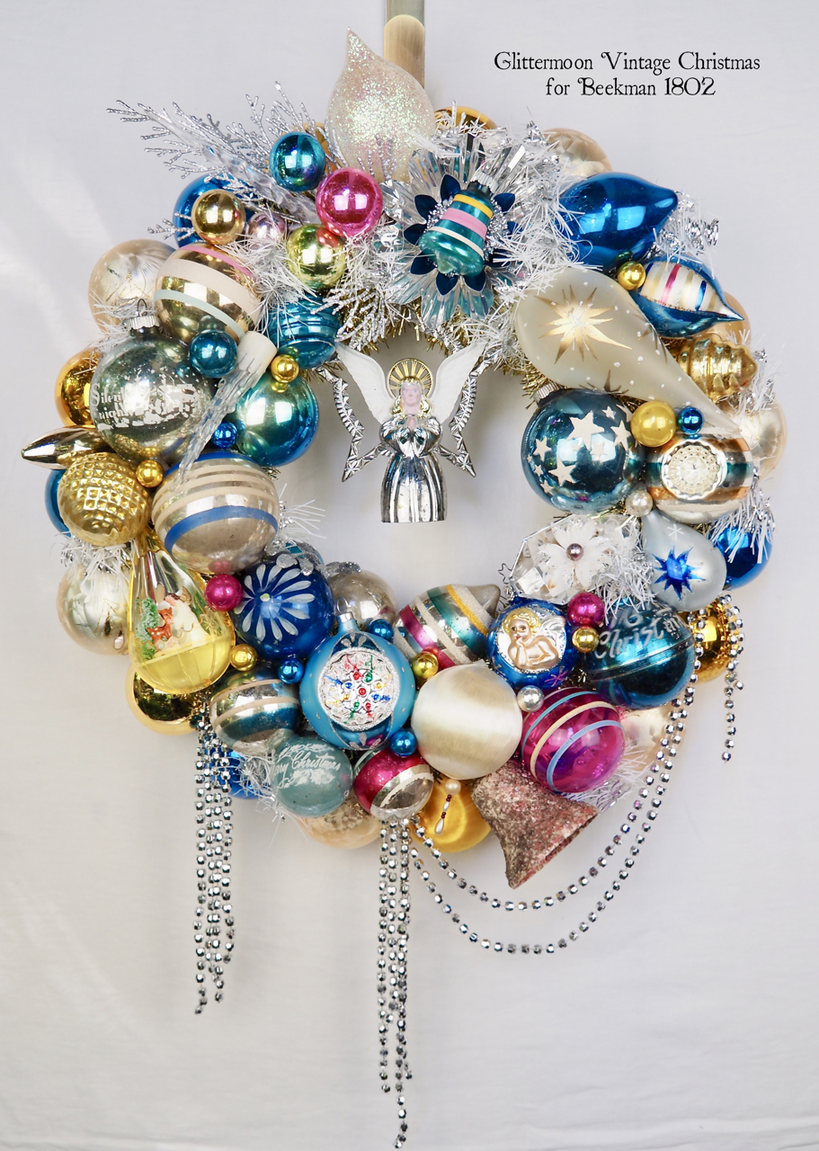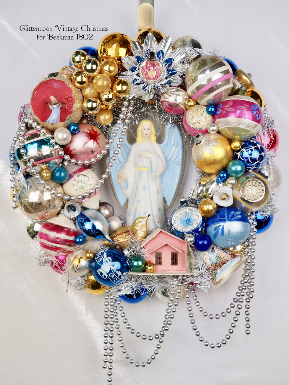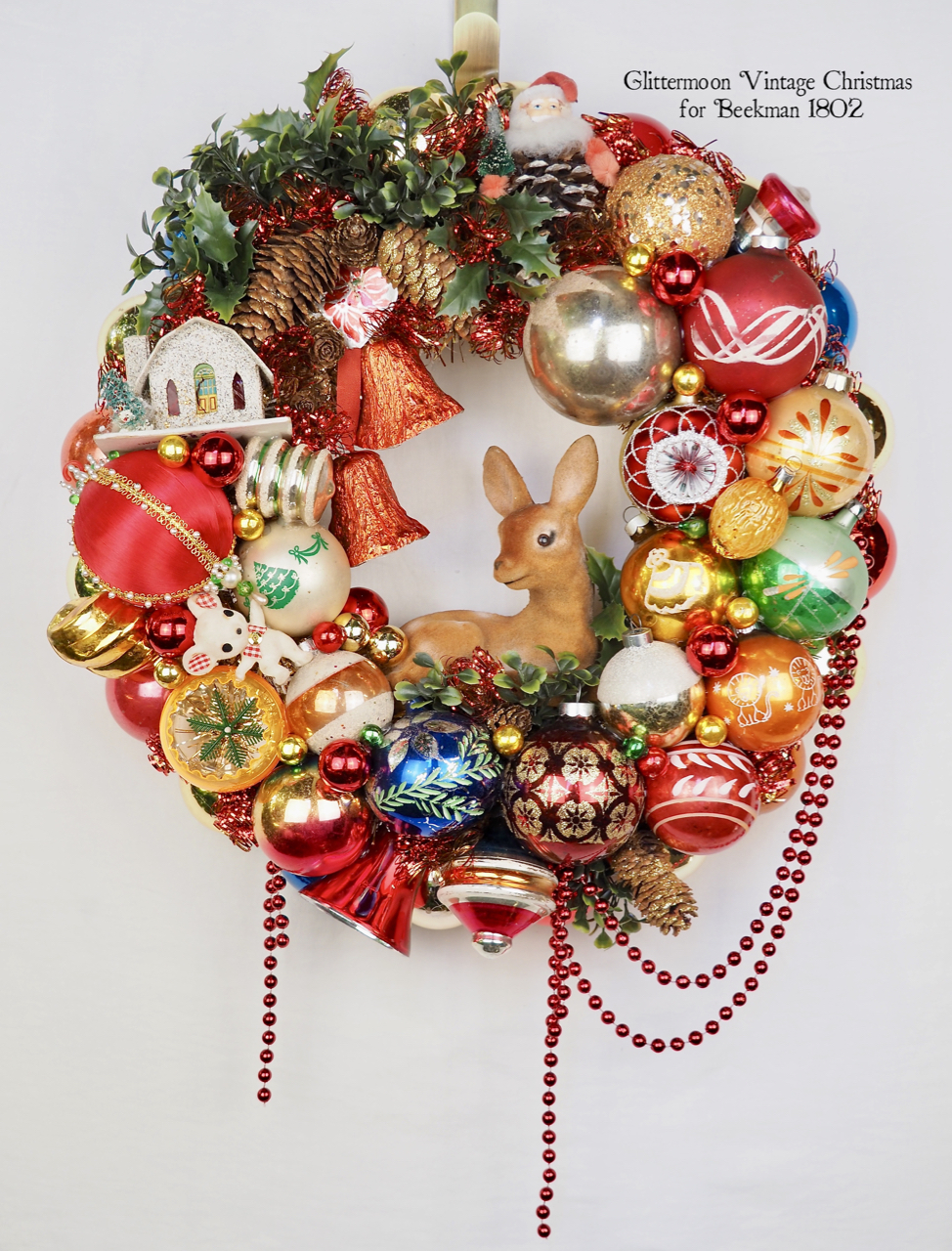 I am very happy that, for the eighth year, Glittermoon Vintage Christmas wreaths will have a presence on the Beekman 1802 Holiday website. Their theme this year is “Jingle All Ways.” As you might imagine, bells feature prominently; most if not all of these wreaths have bells on them.