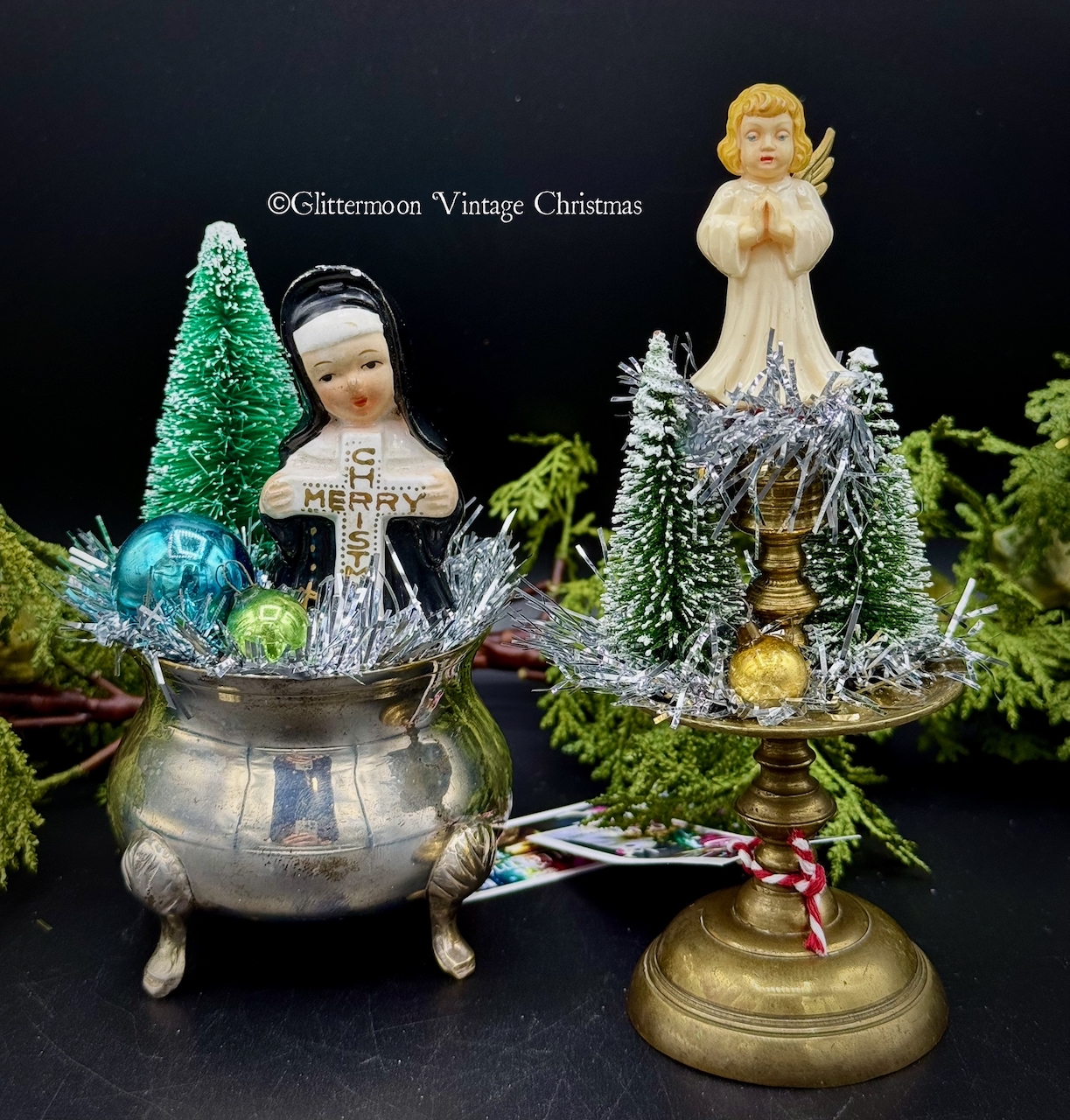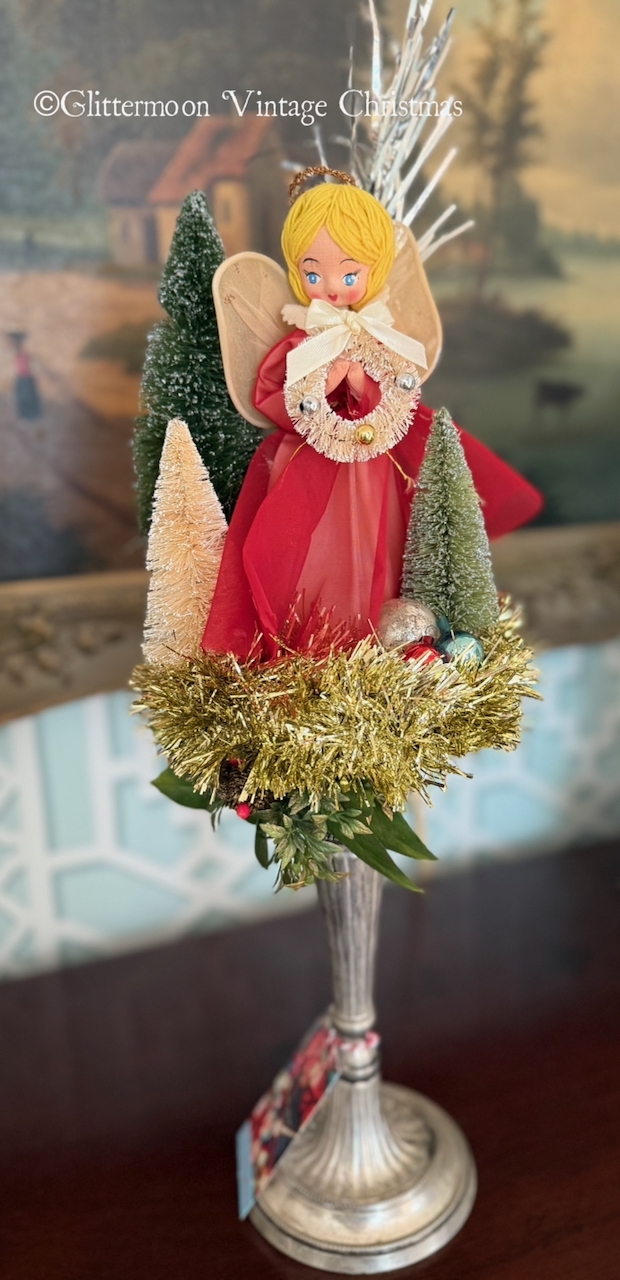 I have about 125 Christmas Canapés all packed to go. They range from itty-bitty to more sizable tabletop decor, from cute to elegant, and everywhere in between so I hope everyone will find something they love to take home.I will also be bringing wreaths of course and a beautiful centerpiece as well. Plus a nice stock of Glittermoon cards, including Christmas/Holiday cards.